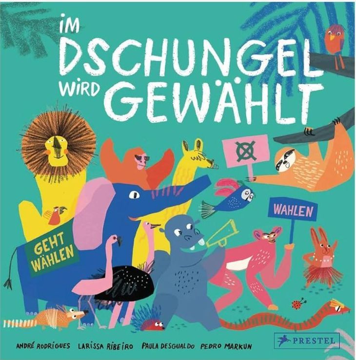 "Im Dschungel wird gewählt" vorgelesen. Dieses Buch erklärt kindgerecht den Prozess und die Bedeutung von Wahlen.