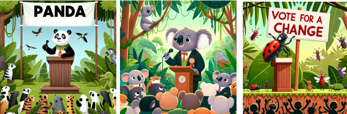 Im Anschluss an das Vorlesen wurde das Szenario ein Jahr in die Zukunft verlegt. Neuwahlen standen an und es stellten sich neue Kandidaten für die Dschungelwahl vor. Diesmal schickten auch die Klassentiere der Kinder ihre eigenen Kandidaten ins Rennen: