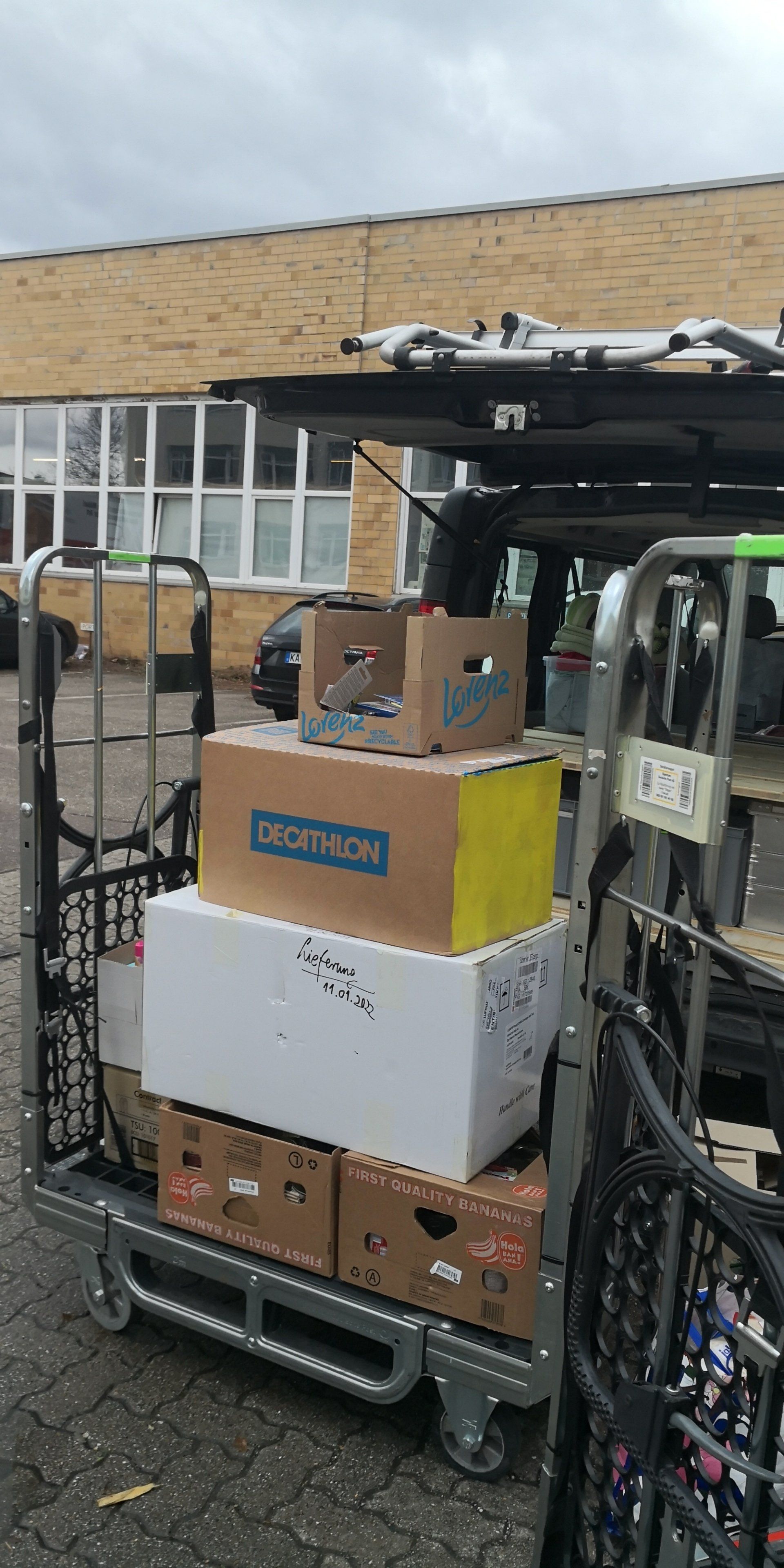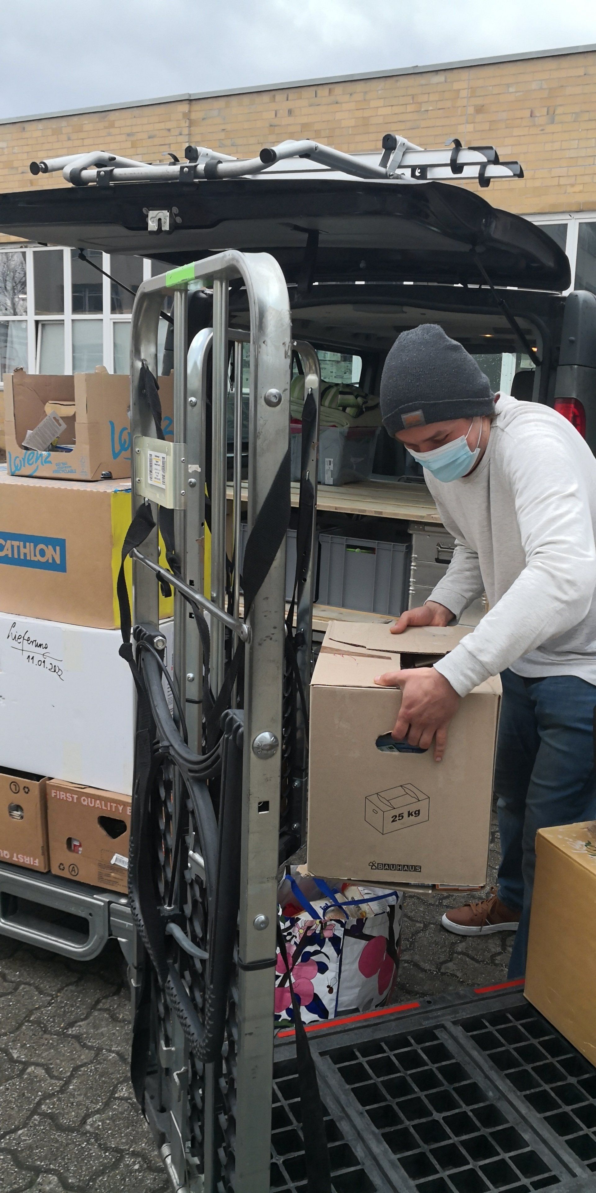 Danach wurden die Kisten zum Transport in einen Bus geladen und zum Verein "Ukrainer in Karlsruhe" in der Fiducia Straße gebracht.